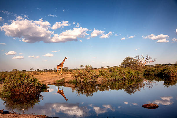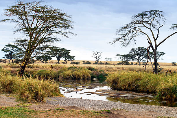 Landscape with a waterhole in the dry season,Serengeti National Park,Tanzania.