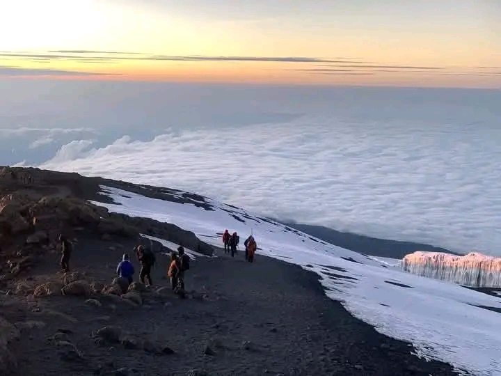 Your day begins around midnight. After a hot drink and snacks, you'll start the final push in the dark. The climb is steep and slow, a true test of mental and physical endurance. You'll reach Stella Point (5,756m) on the crater rim just as the sun begins to rise, illuminating the glaciers. From here, it's another hour or so to the true summit, Uhuru Peak—the roof of Africa! After celebrating, you'll begin the long descent back to Barafu for a short rest and then continue down to Mweka Camp.