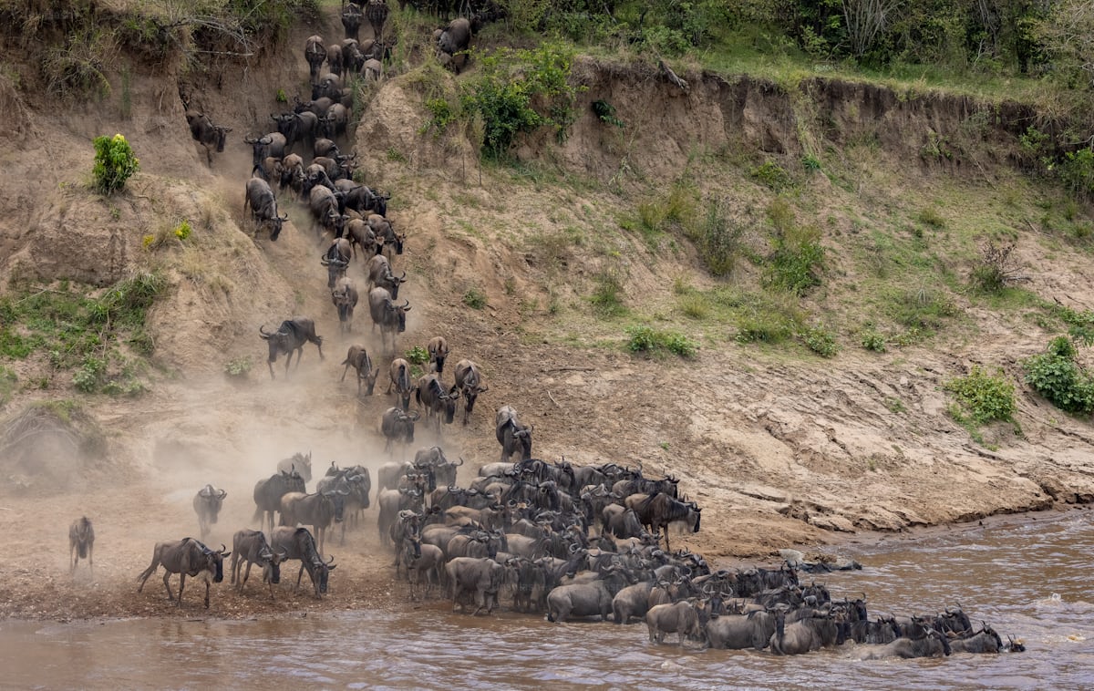 Scale: Nothing else in the animal kingdom compares to watching thousands of panicked wildebeest plunge off steep banks into churning water.