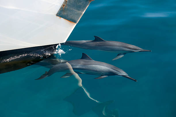 Bottlenose dolphins often swim alongside boats, surfing the bow wake. Spinner dolphins earned their name from spectacular aerial spins, sometimes rotating 7 times in a single leap.